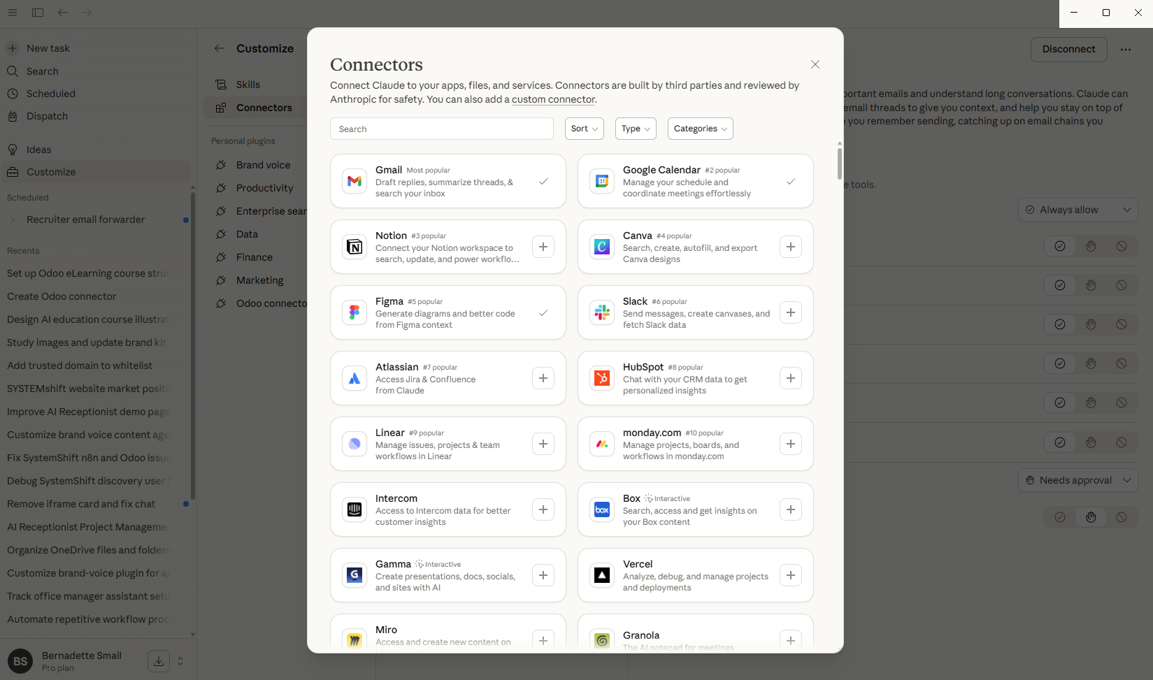 ⚠️ Good to know: Each connector requires a separate authorisation. Connect only the tools you actively need — you can always add more later.